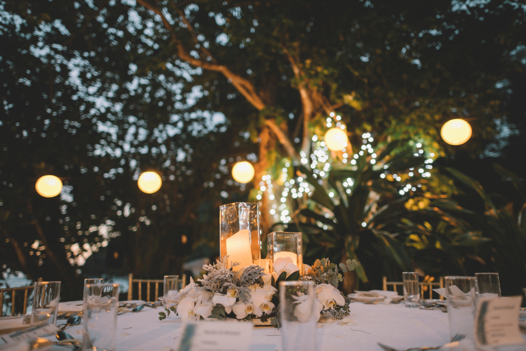 This theme immerses your guests in a magical and ethereal setting. What makes it unique is the combination of natural elements and magical ambiance. Picture yourself as you exchange vows under an arch adorned with flowers, lush greenery, twinkling fairy lights, and softly glowing lanterns. The centerpiece may feature beautiful arcs covered in flowers and vines, creating a romantic and enchanting backdrop for the ceremony. Your guests will be mesmerized by the romantic and magical atmosphere.