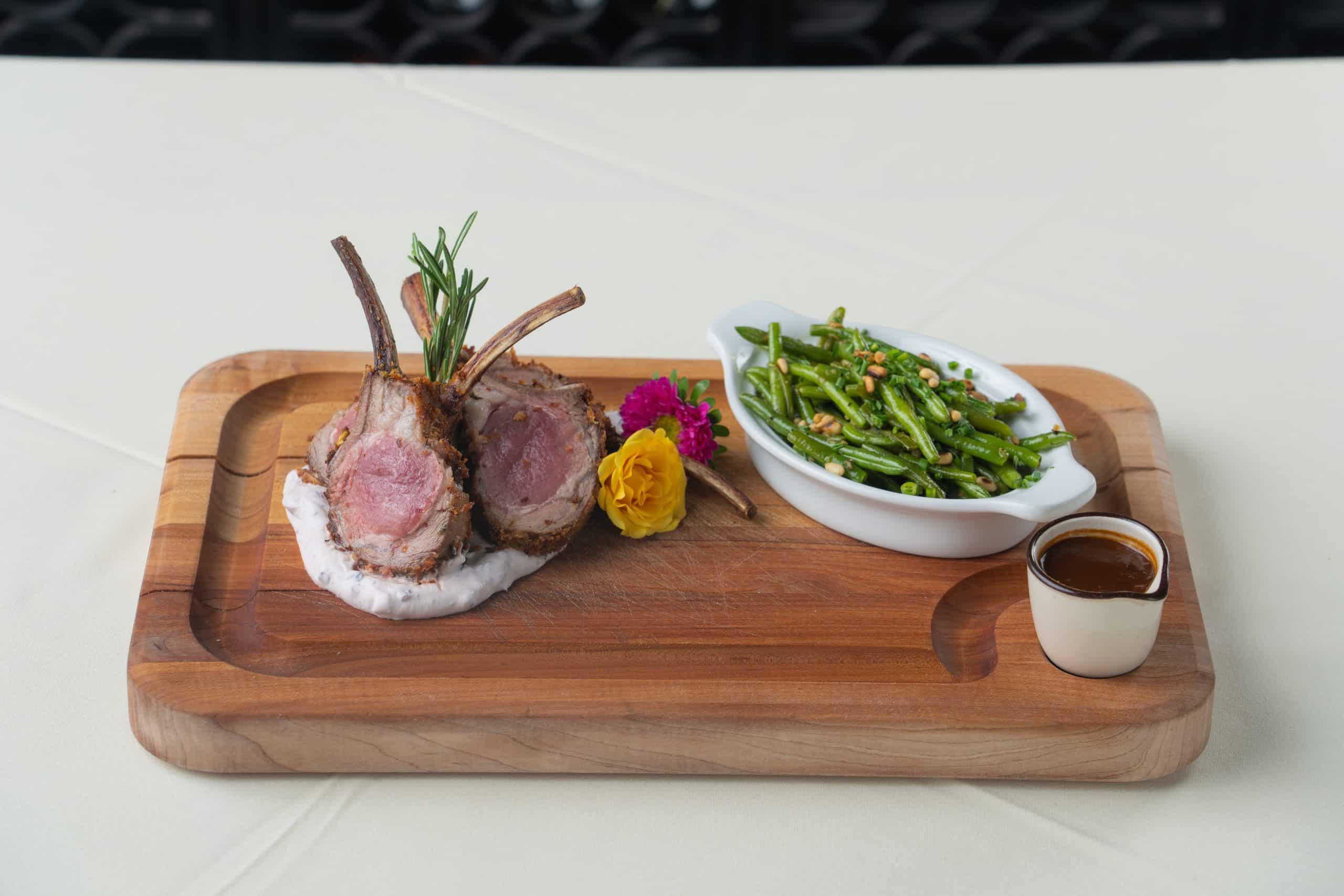 Dining at René is as much about pacing as it is about flavor. The experience unfolds unhurriedly, inviting guests to slow down and savor. Indoors, the dining room is intimate and composed, ideal for conversation and reflection. Outdoors, the courtyard opens to red rock formations and sycamore trees, creating a sense of enclosure that feels both romantic and grounding. As daylight fades and the temperature cools, the space takes on a near-cinematic quality, elevating the meal without overpowering it.