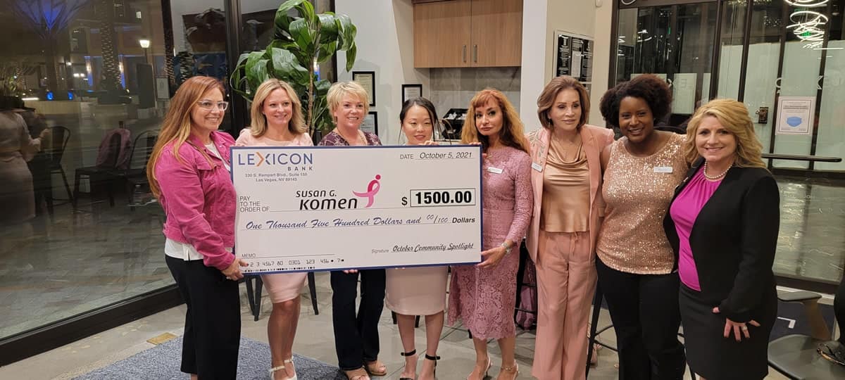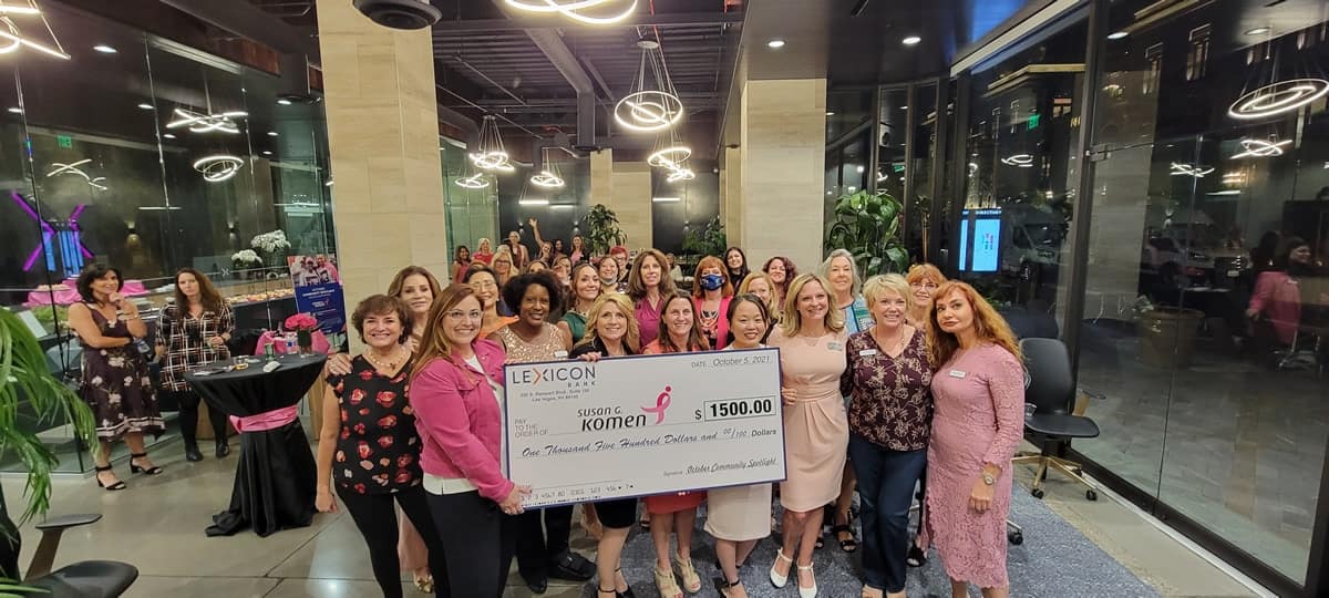 At the women small business month networking event with NAWBO Southern Nevada and Lexicon Bank. Lexicon Bank proudly presented a check to the October spotlight Susan G. Komen Nevada in honor of Breast Cancer Awareness month and bring together remarkable businesswomen from across Southern Nevada
