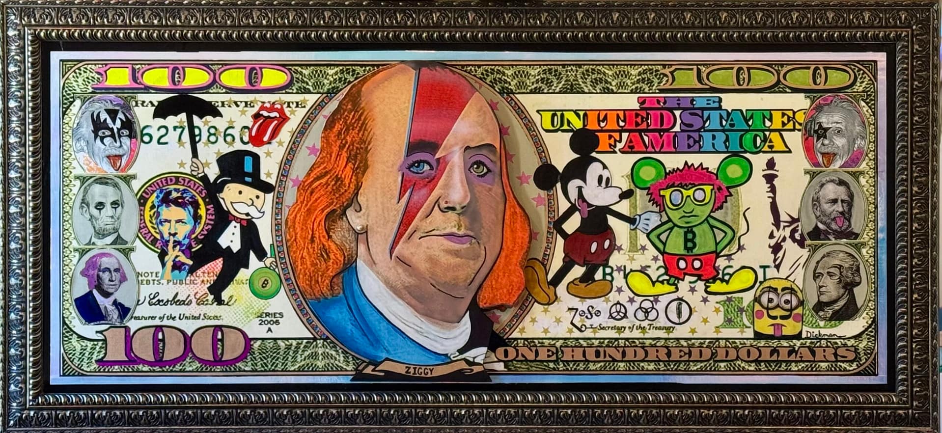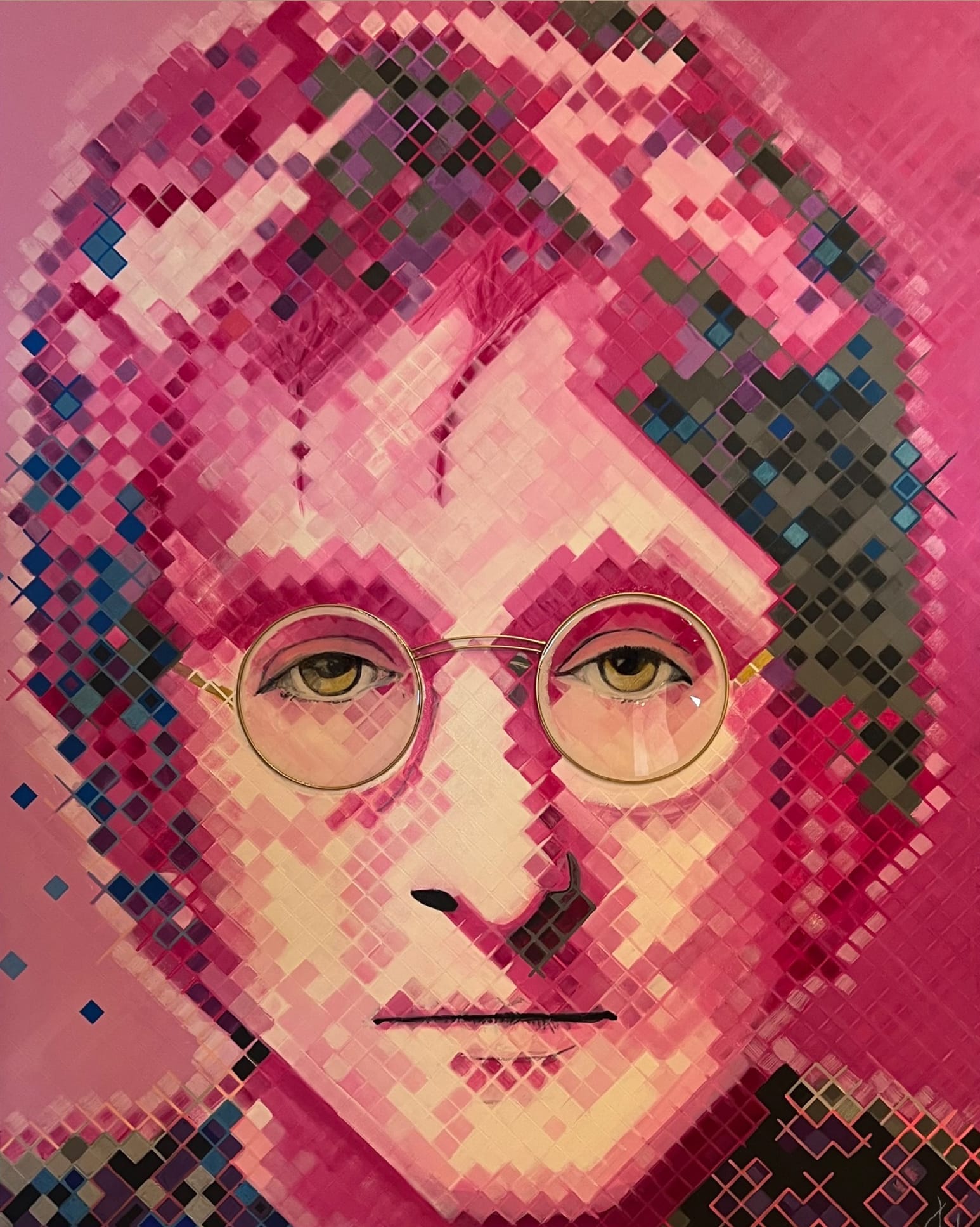 Influences range from Salvador Dalí and M.C. Escher to Picasso, Yaacov Agam, and Andy Warhol, but the work never feels derivative. It feels engineered, calibrated to disrupt visual certainty while remaining irresistibly fun. Pop culture remains one of his most consistent reference points. Music icons are some of Dickman’s favorites.