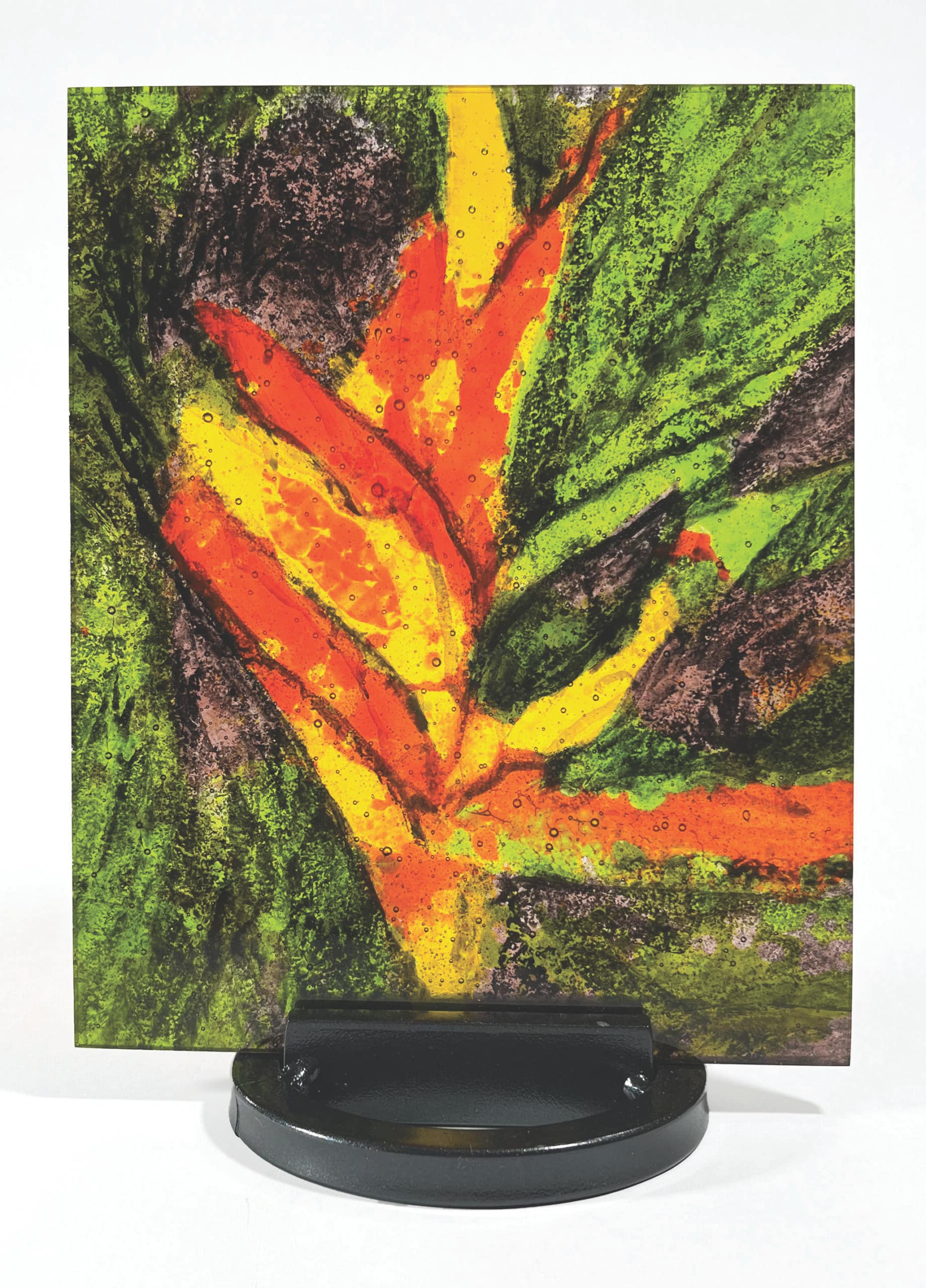 Nature remains her constant reference point, particularly the fleeting beauty of plant life and the quiet drama of seasonal change. Leaves bend toward light, respond to wind, endure heat, then disappear. Elaine captures each piece as a reminder of transformation itself. In recent years, her work has gained increasing recognition through juried exhibitions and gallery presentations, earning honors including a Gold Award from Camelback Gallery and a Best in Medium finalist selection. She has exhibited with organizations such as the Contemporary Glass Society and the Sonoran Arts League, bringing her luminous interpretations of the natural world to broader audiences. Yet accolades feel secondary to the deeper intention behind the work.