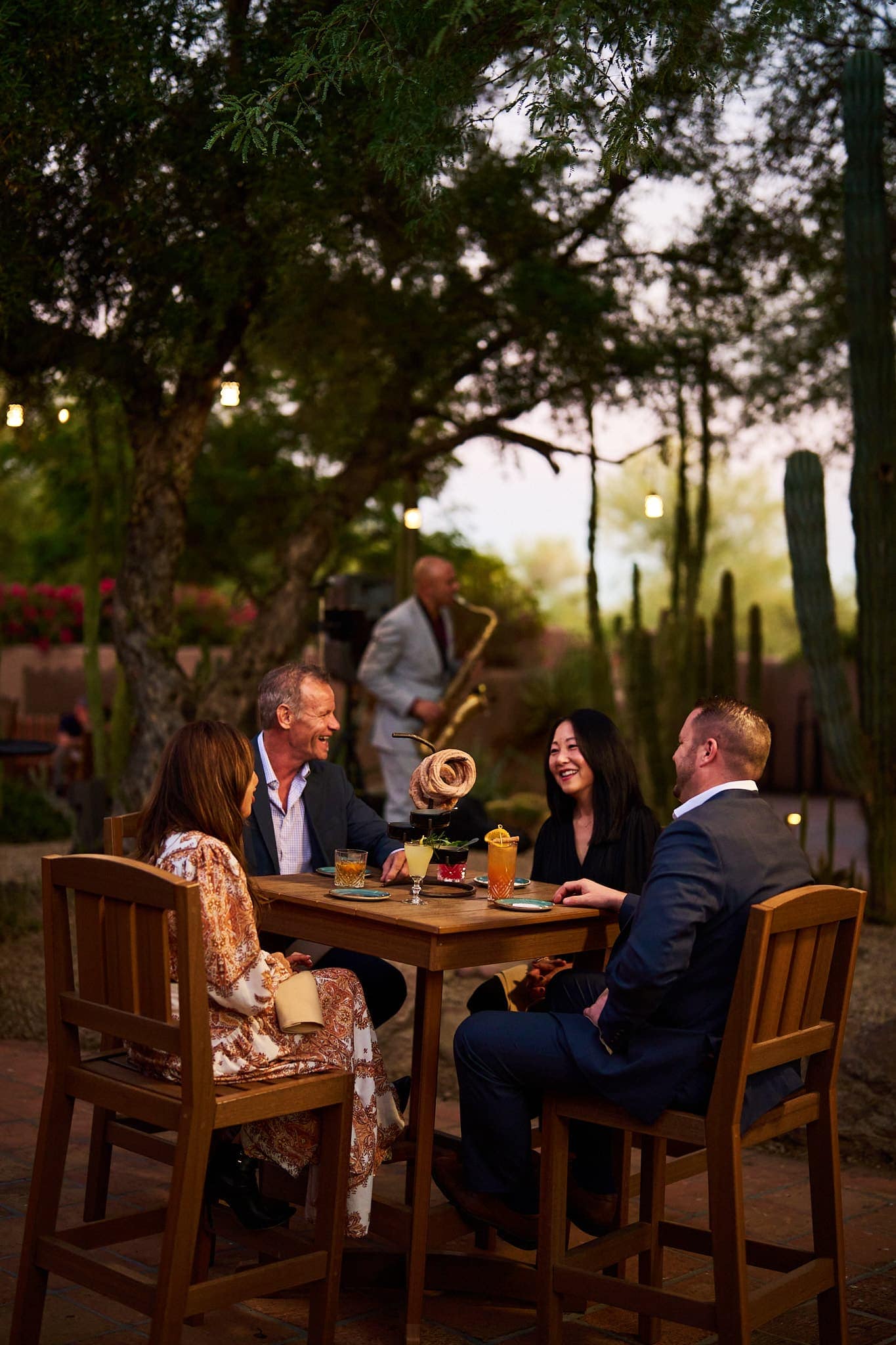 Dining at LON’s transcends the ordinary. The stunning outdoor patio, featuring five fireplaces, a trickling fountain, and vibrant flora, creates a serene and enchanting setting. Arizona’s vibrant sunsets provide a breathtaking backdrop, making every meal a memorable experience. Whether enjoying a romantic dinner or celebrating a special occasion, the ambiance at LON’s patio elevates the dining experience to unforgettable heights