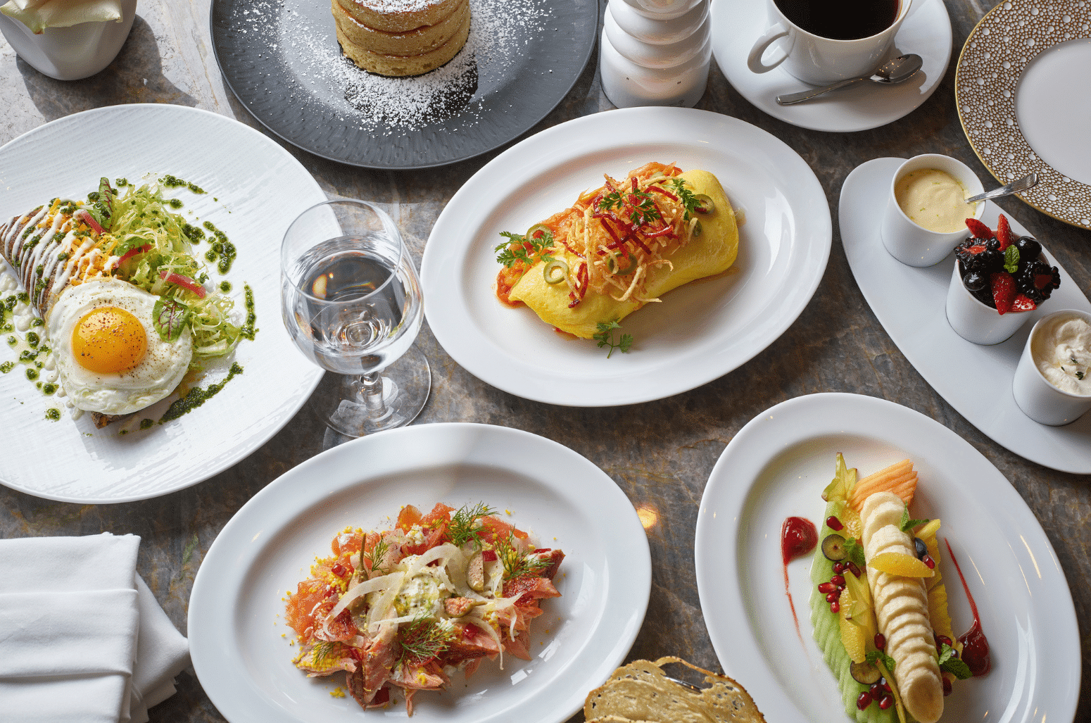 Amidst elegant table settings, enjoy a selection of delectable dishes featuring the finest ingredients, including foie gras, lobster, and caviar. Each plate feels choreographed, yet alive, a performance unfolding one bite at a time. French-inspired cuisine has never looked this good. From Le Traditionnel (smoked ham on potato bread with truffled hollandaise) to Le Royal (smoked salmon on everything brioche with lemon hollandaise). Classic cravings get a French wink.