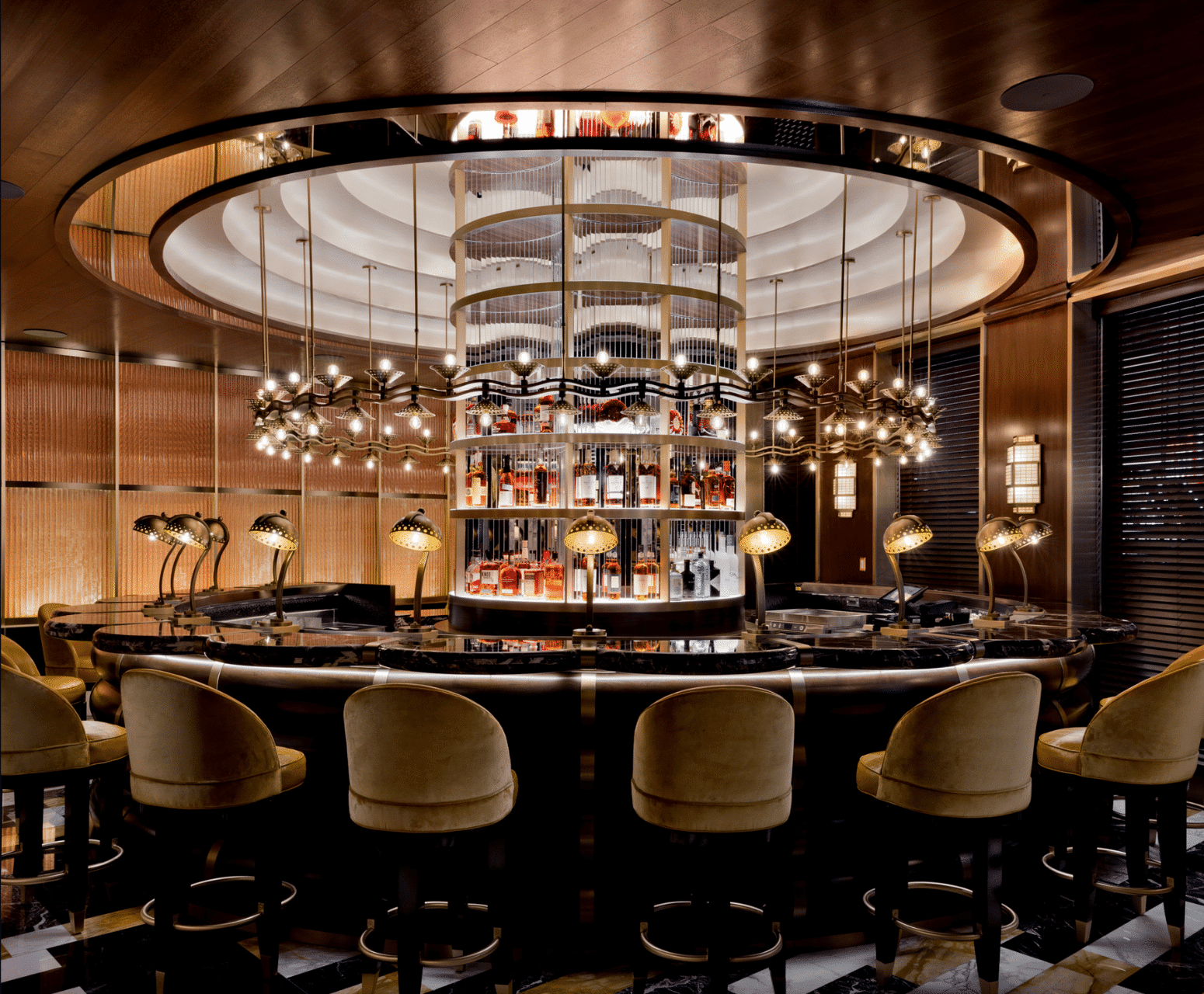 Where you can expect expertly prepared domestic and Japanese wagyu prime cuts with a full embrace of surf-and-turf decadence, every detail evokes that same decadence: plush leather booths, walnut panels, and crystal decanters that catch the light.
