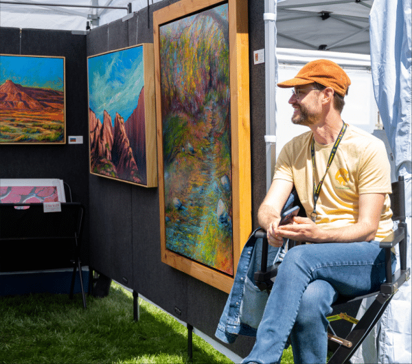 With the dramatic red rock cliffs standing sentry around the city and flowering trees lining the streets, the setting alone feels like a work of art. Against this breathtaking backdrop, the festival invites guests to stroll through rows of artist booths filled with original works across every medium imaginable.