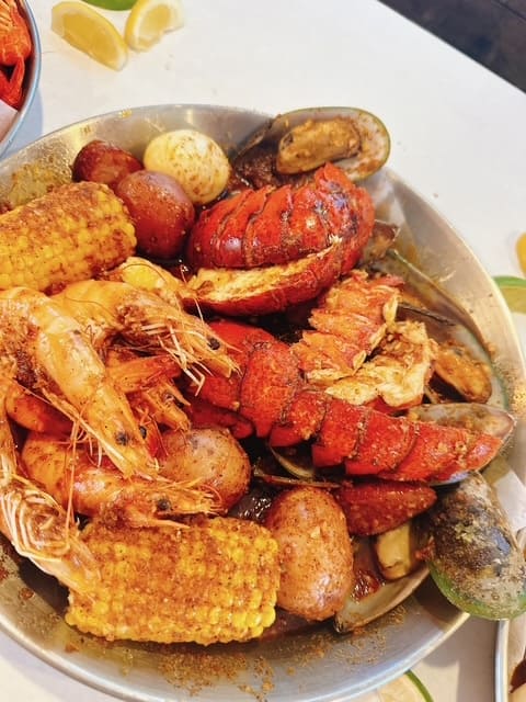 Step inside and say hello to a playful, nautical atmosphere and the mouthwatering aroma of garlic, spice, and sizzling seafood. Tables hum with conversation as steaming bags of crab, shrimp, and crawfish arrive, the air rich with butter and Cajun seasoning. If there is one thing Rusty Crab Daddy excels at, it’s seriously good seafood. At the heart of Rusty Crab Daddy’s menu are the signature seafood boils. These aren’t just plates of food, they’re true centerpieces. Diners choose their favorites, snow crab legs, shrimp, crawfish, mussels, clams, and then select their seasoning and spice level. When the bag is opened at the table, a wave of aromatic steam escapes, carrying notes of garlic, paprika, citrus, and slow-melted butter.