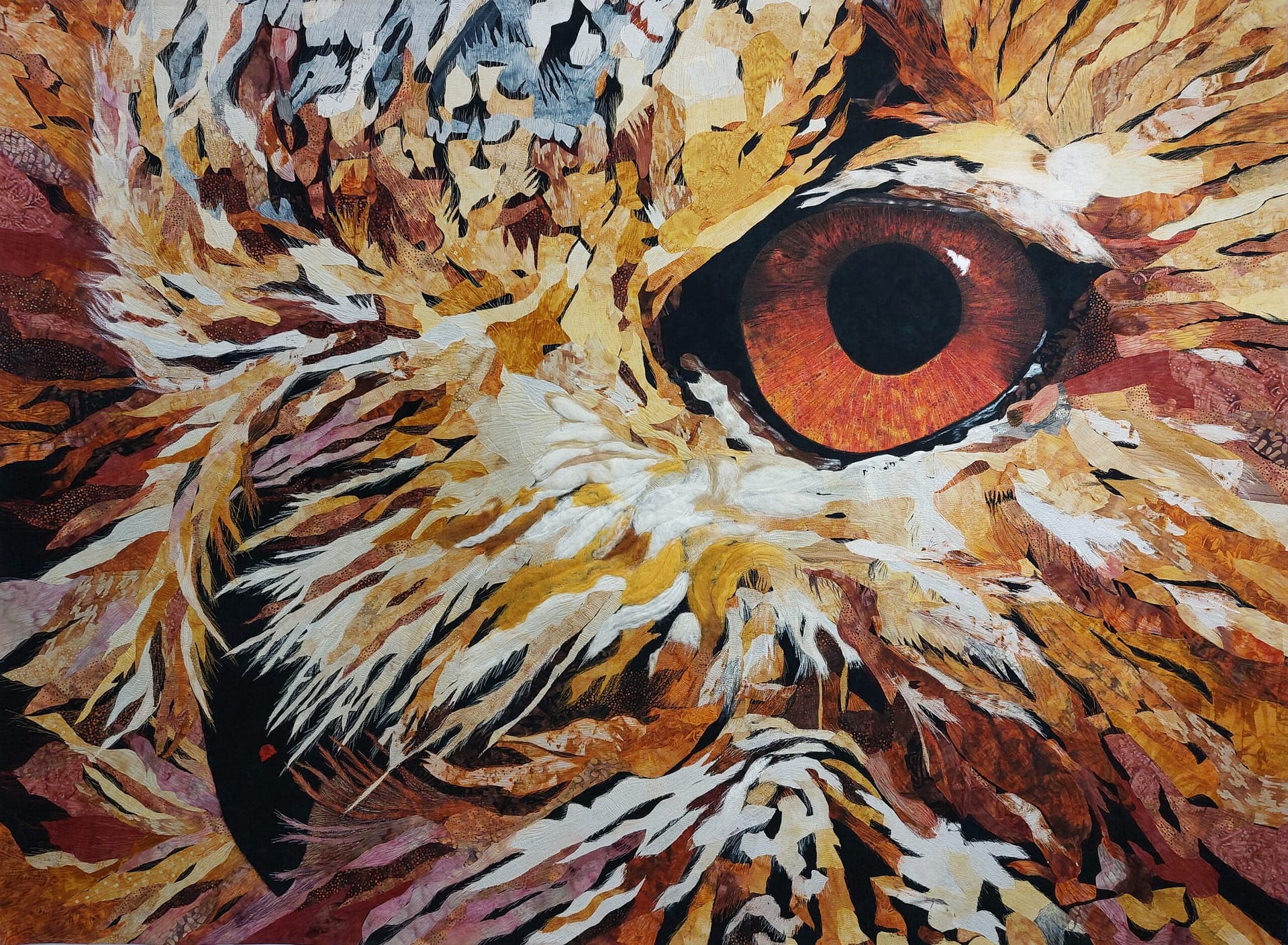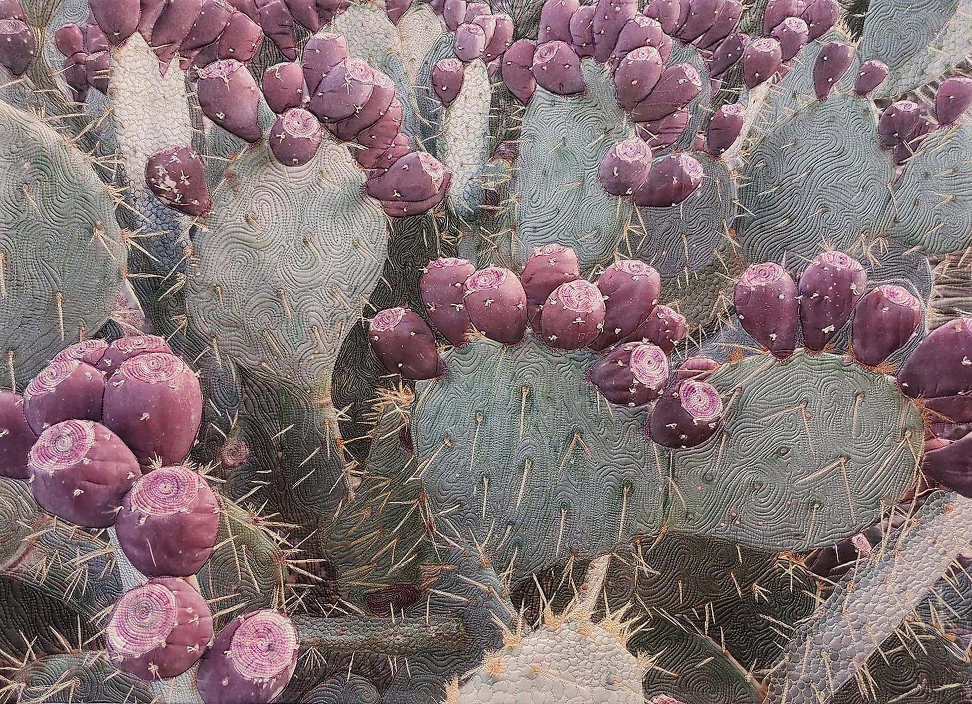 From across the room, you see a painting. It’s phenomenal, layered, dimensional, emotionally charged, a brilliant expression of paint on canvas. Only upon closer inspection do you realize you were wrong. What appears to be a brushstroke is thread, and what feels like pigment is fabric, hand-dyed and stitched into life.